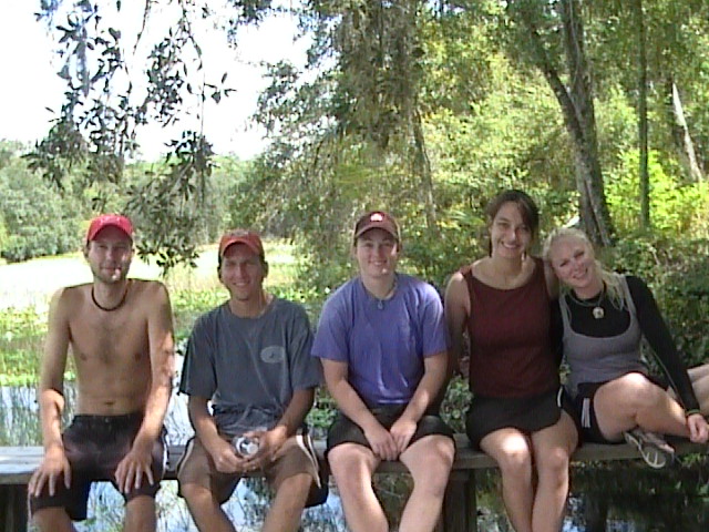 We had a good trip on Sunday kayaking at Alexander Springs in the Ocala National Forest. We dropped Mandy's jeep off at the take out, which was a launch about five miles down a forest road, I use the term road loosely. The road was half puddles, but Mandy's Jeep and Jordan's Toyota truck made it through thanks to some good driving. For future reference I would stick with 4x4s if you go down the road. We put in at Alexander Springs state park. The spring was beautiful and the run was deep and crystal clear for the first part of the trip, we saw schools of mullet and quite a few bass and a river otter. The river then transitioned to a river of grass, wide and no more than 3 ft deep. Here we saw a number of alligator, one about 6ft long basking on a log. We stopped to eat lunch on an old dock, then continued down the river. The river transformed again into a smaller tanin colored creek that wound its way through hyacinths, water lilies and islands. At a few points the hyacinths and reeds got pretty thick and we were wondering if the river was navigable, but it turned out there was always a way through, around an island or under a branch. Overall we made it to the takeout, 7.5 miles down river in about 4.5 hours. We were greeted by an extraordinary collection of good ole boys jumping off trees at the launch.