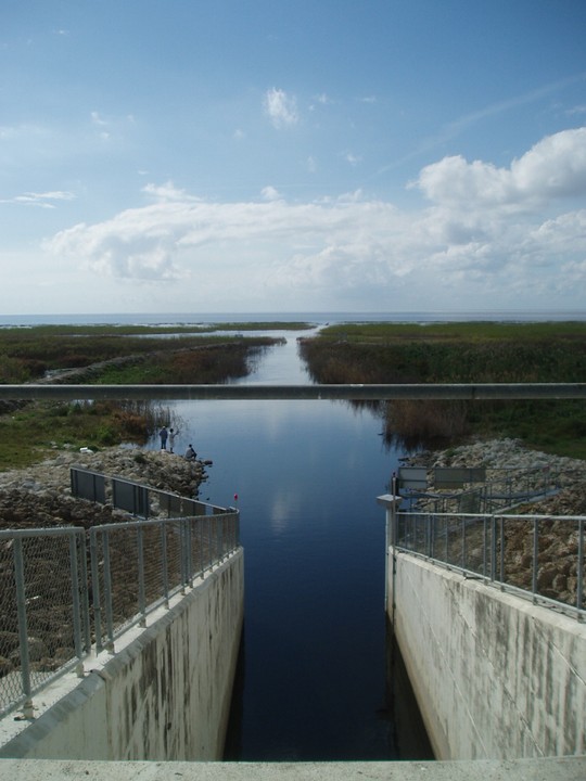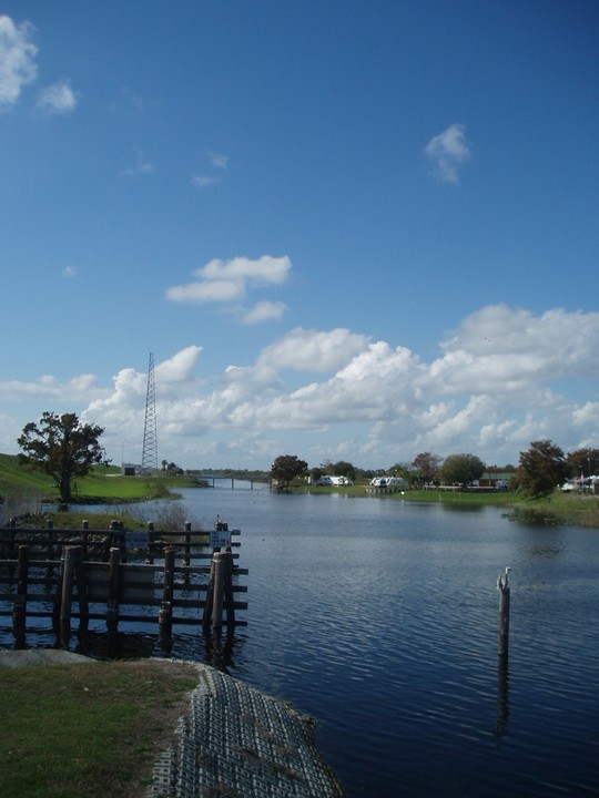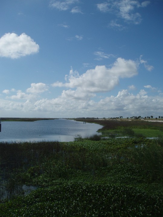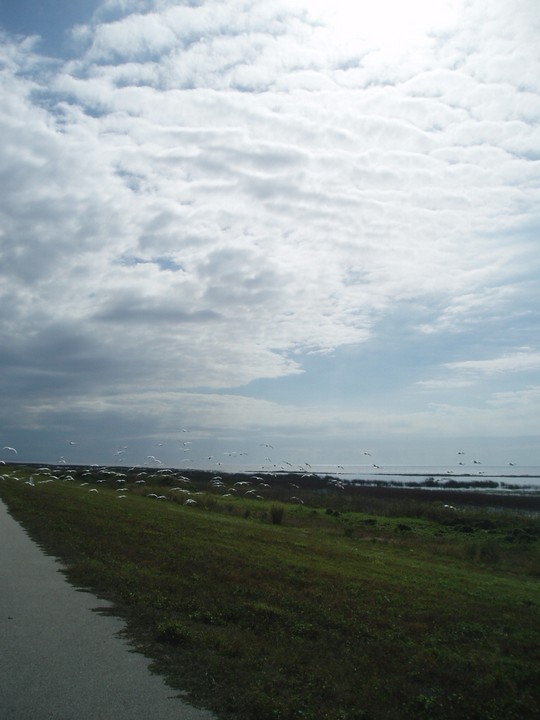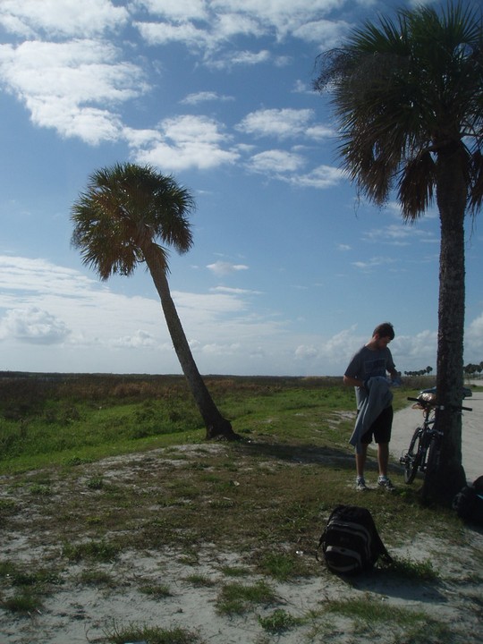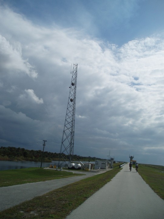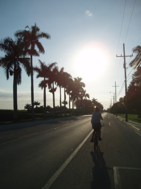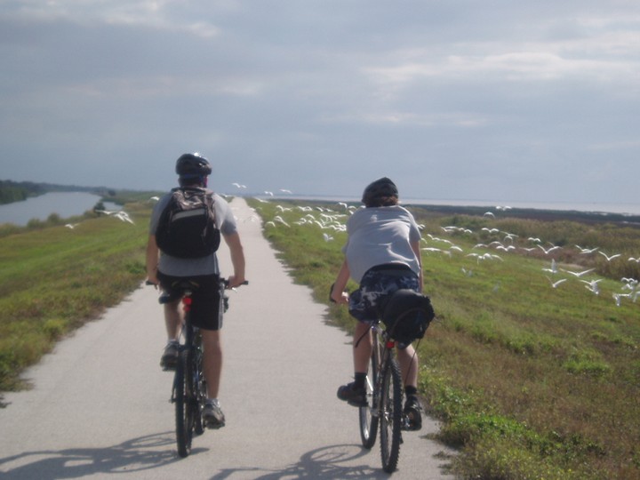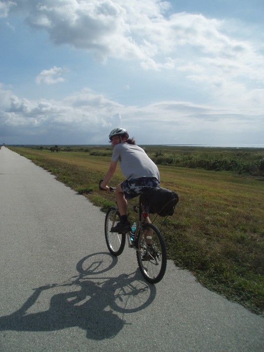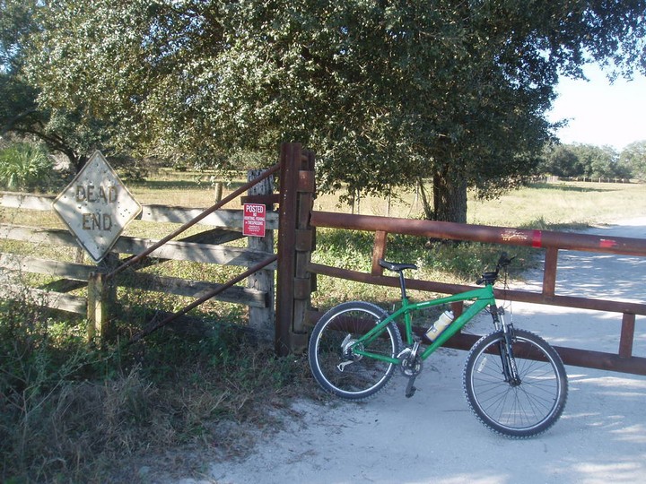 Warnings: About half the trail (Okeechobee clockwise to Moore Haven) is nicely paved or easy dirt (except for a few sections that are closed for construction and require detours through towns or hopping fences). The other half is terrible rocky double track - I would recommend strongly against doing this half unless you have 29" extra-wide tires. There are very few signs and it is quite easy to get badly lost (I spent 4 hours biking through cattle ranches). The towns along the way are very culturally interesting with lots of ethnic food options. Except in the dead of winter, bugs are very bad at dusk. Clewiston has cheap hotels (~$40), but there are lots of platforms along the trail that fit one person each - there are also unsigned primitive campsites in some places. Biking at night is a viable option on the first half, but watch out for gates and other obstacles.