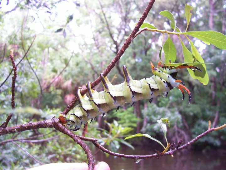 What: Paddled about five miles up Pellicer Creek from Faver Dykes State Park, took cover under I-95 to avoid being fried by frighteningly powerful lightning strikes, and ducky surfed off Crescent Beach. But all of this paled in comparison to the Hickory Horned Devil caterpillar we spotted on a branch overhanging a tiny, overgrown stretch of the upper end of the river. This thing was roughly the size of a small dog and looked quite capable of devouring your soul.