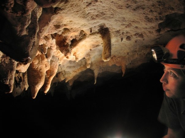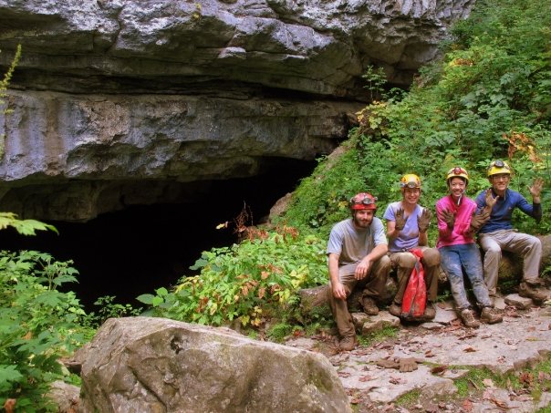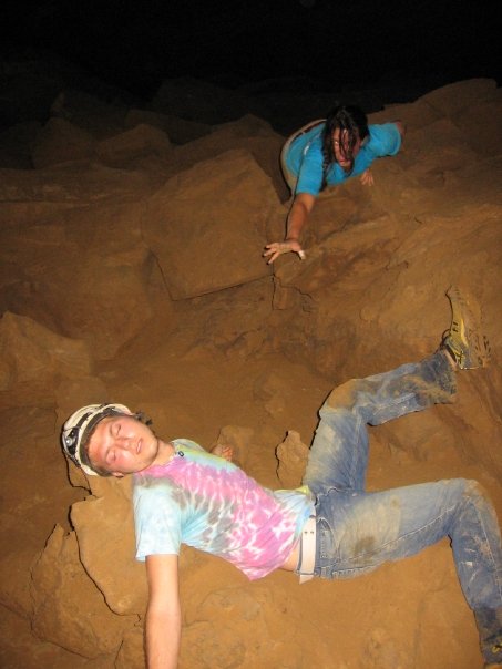 We all met up around 9 the next morning and headed for Bluff River Cave. Since I hadn't bothered to put the coordinates in my GPS, we wandered aimlessly around the woods, trying to make sense of the mostly useless directions. Just when we were ready to give up and go for lunch, the first car of the morning showed up on the muddy, rock-strewn road and the driver lead us on a 10-minute drive to a completely different spot. Clothed in a dress shirt and slacks, something like a turban, and a headlamp, we couldn't decide what this guy was up to, but he showed us exactly how to get to the cave, gave us helpful tips on nearby caves, and, after bidding farewell once, even drove back up the mountain to offer us a place to stay. You really can't ask for more friendly, helpful people than you'll find in the TAG caving community.