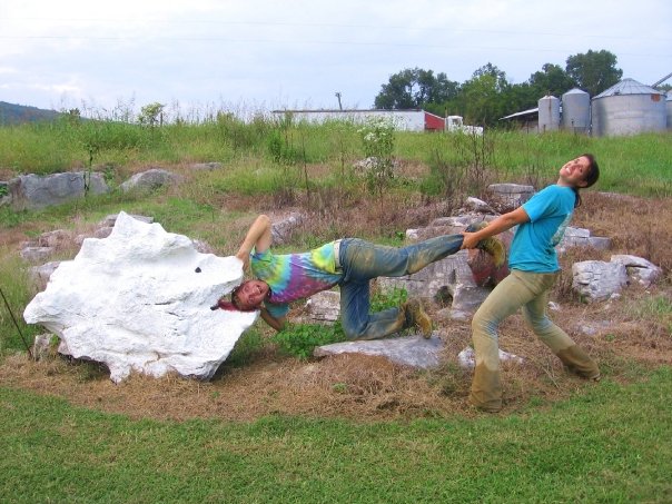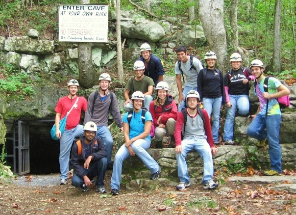 The two-school, 16-person multi-trip began at around 4PM Friday when my car left from the gear shed at around the same time Andie and her cohort left from Tallahassee. An hour later, Dan and his women took off in their Celica at approximately half the speed of sound and arrived half an hour before either of the earlier cars. My group stopped at the hard-to-find Enat Ethiopian restaurant for some delicious and cheap injera, alichas, and wats; despite the fact that we had opted to split two meals among the four of us, the owner gave us huge refills on bread to finish our sauce, and subsequently, refills on sauce to finish our bread, and continued this pattern till we were all stuffed. We got into the campground at Tumbling Rock cave around 2am and made a half-hearted attempt at the campfire thing before turning in half an hour later.