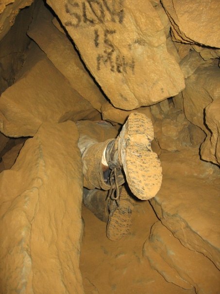 The group was up and raring to go at 7:30 and we were all suited up by the time the manager showed up to let us in at 9. As usual, Tumbling Rock was amazing and we spent a full 8 hours inside, navigating all the way back to the Pillar of Fire. It was a good deal harder than I had made it out to be, but everyone stayed in high spirits, and most even seemed to enjoy the tortuous Suicide Squeeze (personally, I've been a big advocate of installing an elevator from the surface to the room following this feature). Chris tried his best to give us a chance to put our rescue skills to the test, but his bones proved surprisingly resilient. We discovered on the return trip that our Walmart compass had in fact been rigged backwards, but a helpful survey crew pointed this out to us before we got too lost.